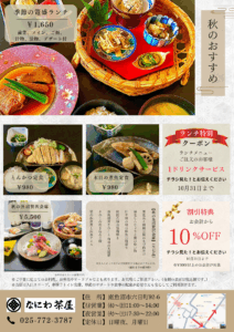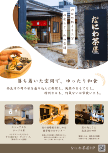 忘年会・新年会承ります 2025.10.13 お知らせ 秋の特別メニューやおまかせコースで なにわ茶屋をご利用ください 一年の労を労って美味しい料理と旨い酒で 「おもてなし」 大将のこだわりの料理と 女将が厳選したお酒の数々を 落ち着いた空間で ゆっくりとお過ごしください。 前の記事へ 次の記事はありません
