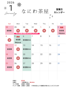 店休日は、日曜日の夜と月曜日をお休みさせていただいております。