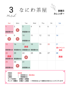 (予約状況により変更していることもございます、営業日カレンダーをご確認下さい)