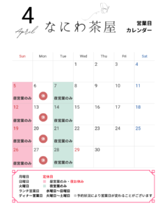 「なにわ茶屋4月の営業日」 をお知らせいたします。